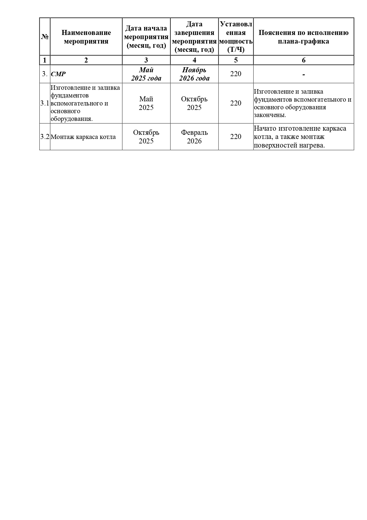 - Отчет по исполнению плана-графика подготовки и реализации проекта строительства котлоагрегата ст.№15 за Май 2025 года.