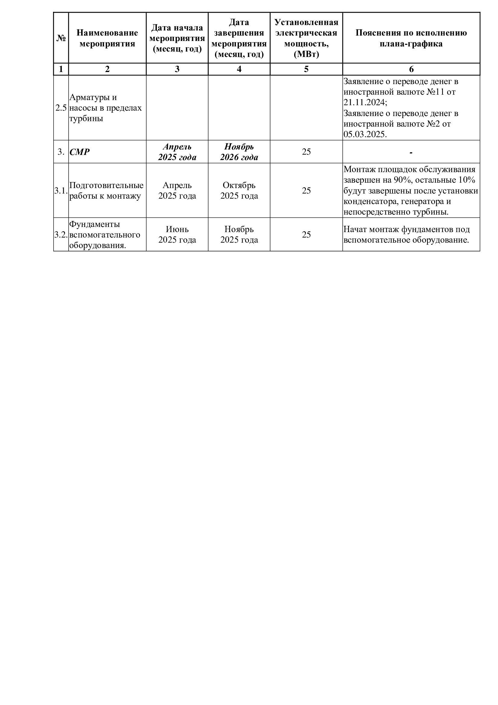 - Отчет по исполнению плана-графика подготовки и реализации проекта строительства турбоагрегата ст.№11 за Май 2025 года.