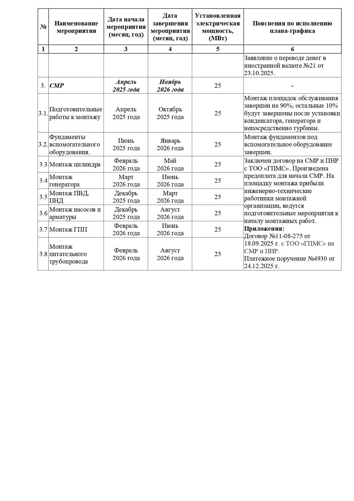 - Отчет по исполнению плана-графика подготовки и реализации проекта строительства газотурбинных установок за декабрь 2025 года.